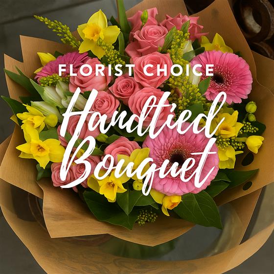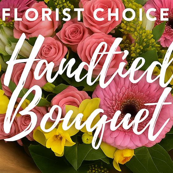 A classic handtied bouquet crafted using seasonal flowers chosen by our florists. Each design is made to order and tailored to the colours you prefer. Suitable for any occasion or sentiment. This florist choice handtied bouquet is carefully prepared and delivered fresh with care by us, direct by hand.
