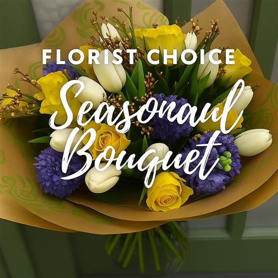 A hand-tied seasonal bouquet created using the freshest flowers we have in stock. Every design is made to order and will vary depending on availability and the colours you choose. Perfect for any occasion, this florist choice bouquet is thoughtfully prepared and delivered fresh with care by us, direct by hand.